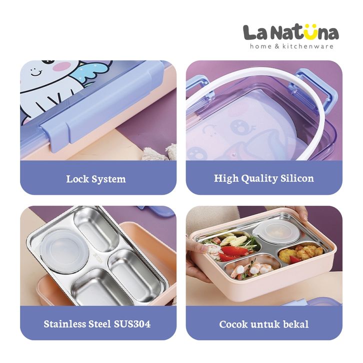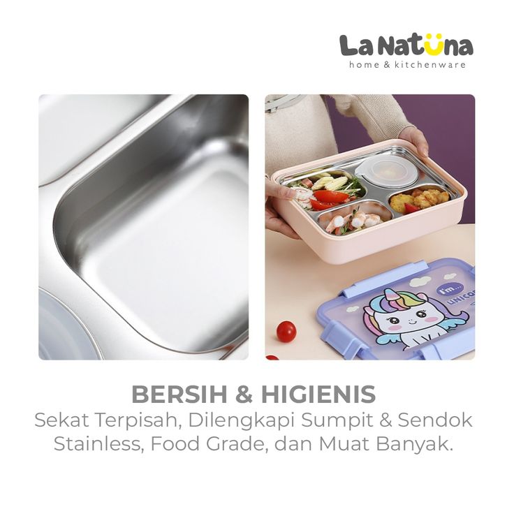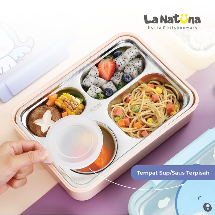 kotak bekal anak La Natuna Lunch Box Stainless Tempat Makan Kotak Bekal Bento Anak PAUD TK SD Food9rade BPA Free