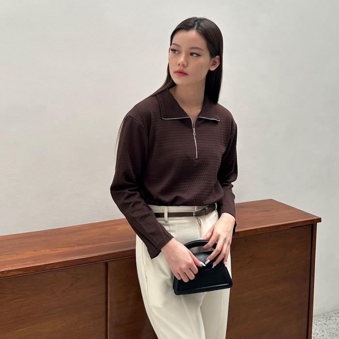 Caerys - Vina Top - Atasan Lengan Panjang Wanita - Long Sleeved Cream Fit Knitwear Rib Basic Baju Casual