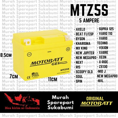 Aki Accu Motobatt MTZ5S Beat Vixion Supra X 125 Mio Soul Revo MX New R15 Vario 110 Spin