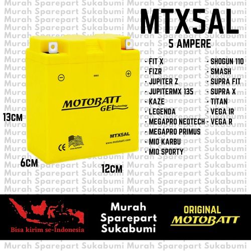 Aki Motor Motobatt GM5Z-3B/MTX5AL Supra X Jupiter Mx Megapro Mio Smash Vega9rand Original 100persen