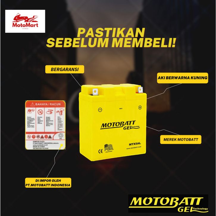 Motobatt Gel MTX5AL YAMAHA Vega Series / YAMAHA RZ-R / YAMAHA RX-Z / YAMAHA Mio Sporty / YAMAHA Jupiter Series / YAMAHA