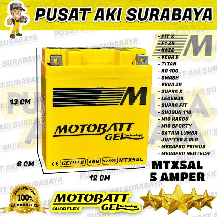 GARANSI AKI ORIGINAL MOTOBATT MTX5AL 12 VOLT 5 AMPER LEGENDA JUPITER Z OLD ACCU KERING MF JAMINAN KUALITAS GM5Z GT6A YB