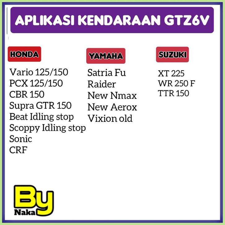 Aki Motor Honda Vario 125/150 /PCX/CBR 150/Satria FU/Sonic/New N max Motobatt MTZ6v Original
