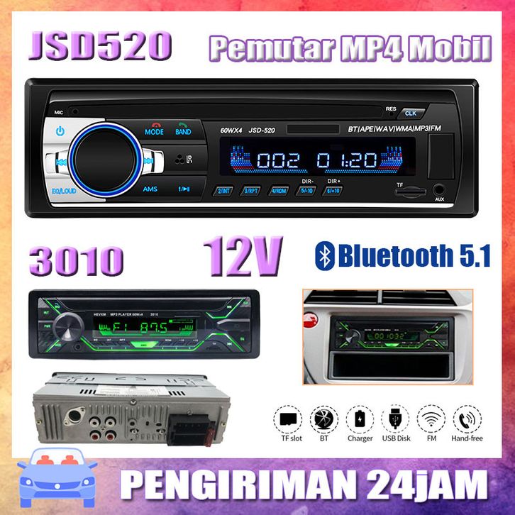 Bisa Tape Audio Radio Mobil Multifungsi Bluetooth USB MP3 FM Radio JSD-520 Single Din JSD-520 3010 Audio Tape Mobil LC