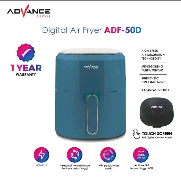 ADVANCE Air fryer Digital hemat listrik ADF-50D 5L air friyer mesin penggoreng anti lengket Garansi Resmi 100% ORI