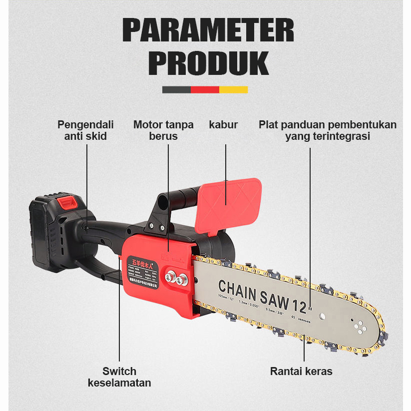 IRONHOOF Chainsaw Gergaji Rantai Elektrik Mini 12 Inch Portable Genggam Lithium 24 Volt Chain Saw