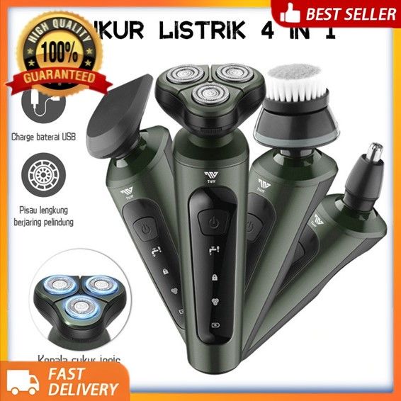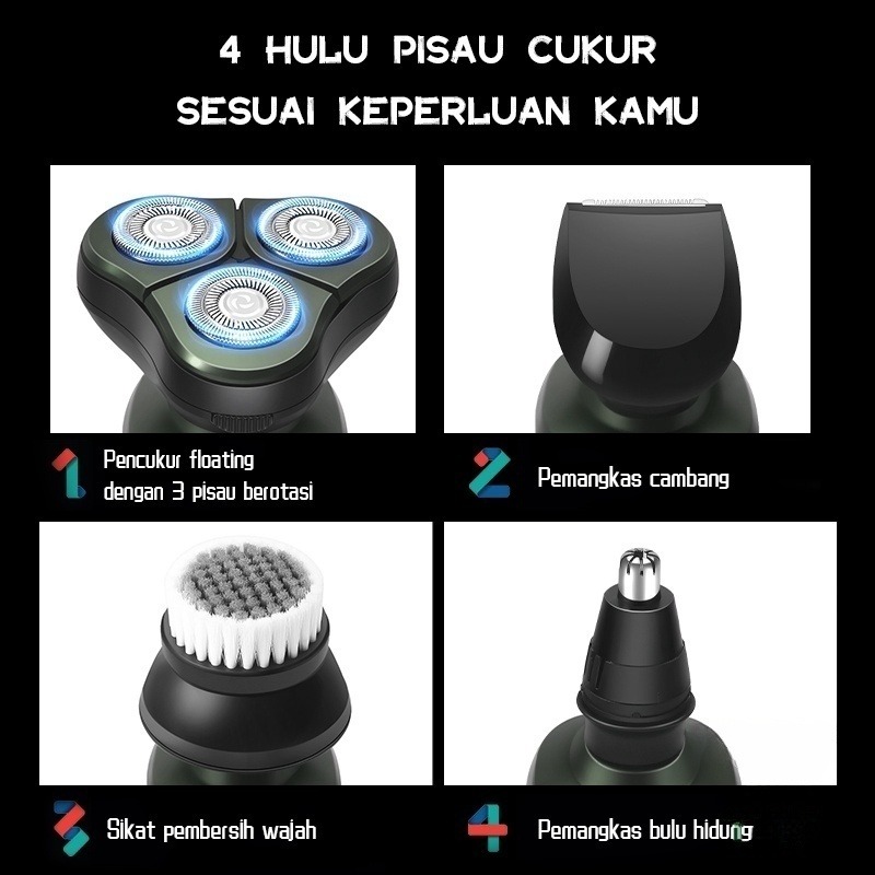 Alat Cukur rambut 4 in 1 Electric Shaver Razor Nose Hair Trimmer Rechargeable Beard Face Hair Cutter Trimmer Grooming