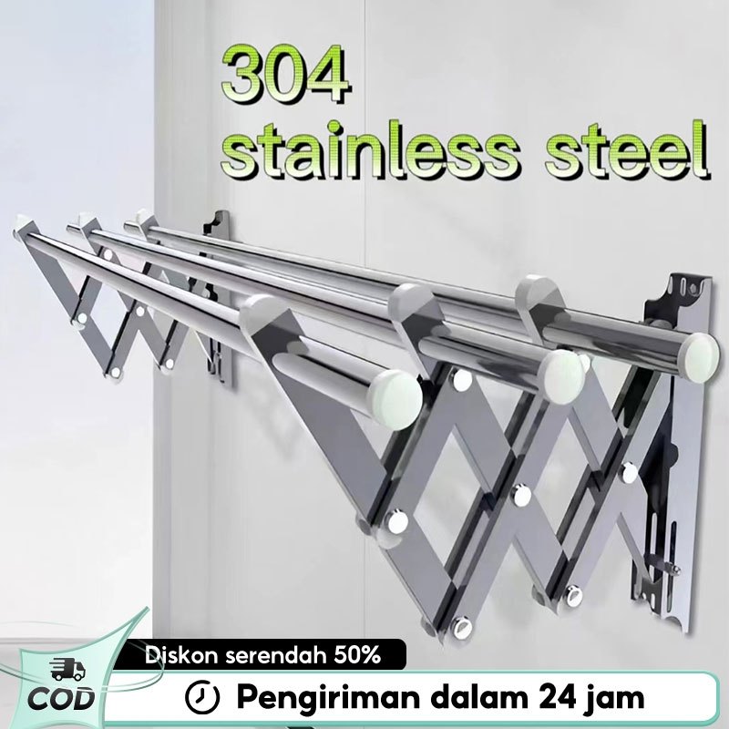 Jemuran Baju Tempel Dinding - Rak Jemuran Pakaian Basah Lipat Rak Jemuran Jemuran lipat dinding stainless steel