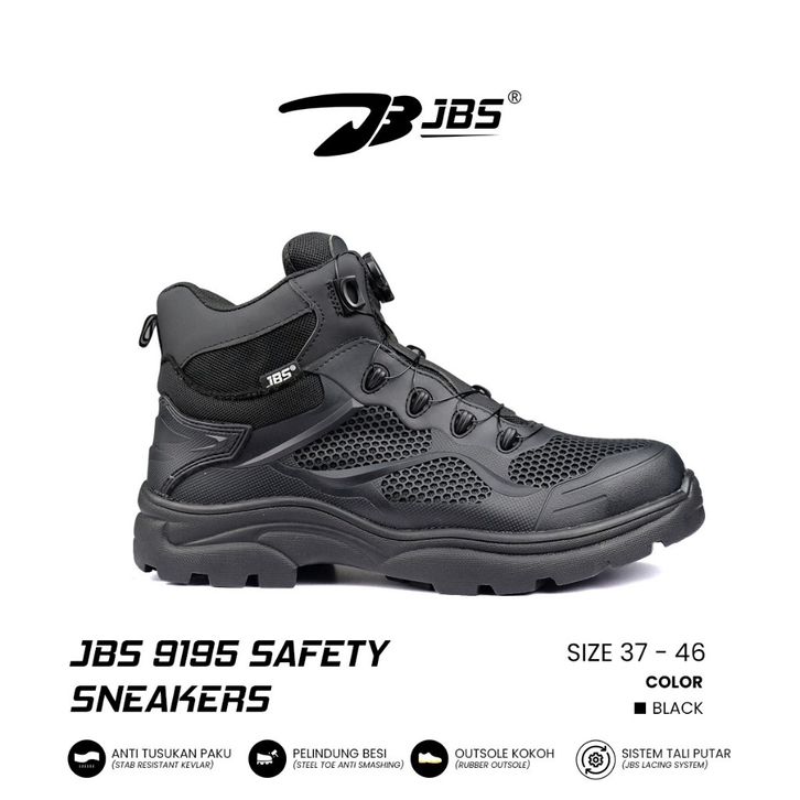 TERBARU Sepatu JBS 9195 Sepatu Safety Sneakers Tali Putar Pelindung Baja Anti Tusuk Paku Kevlar