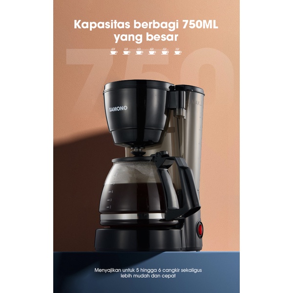 Samono 750ML Coffee Maker Mesin Kopi Multifungsi 2 in 1 Anti Bocor 600Watt Low Watt Bahan Plastik SW-CMB06B Black