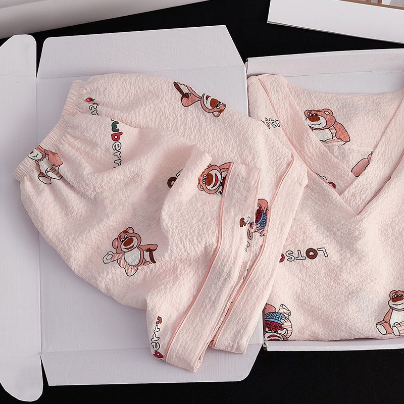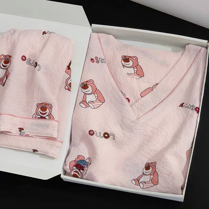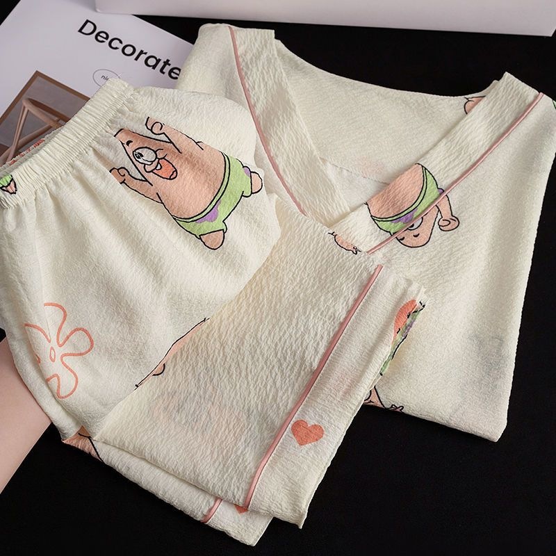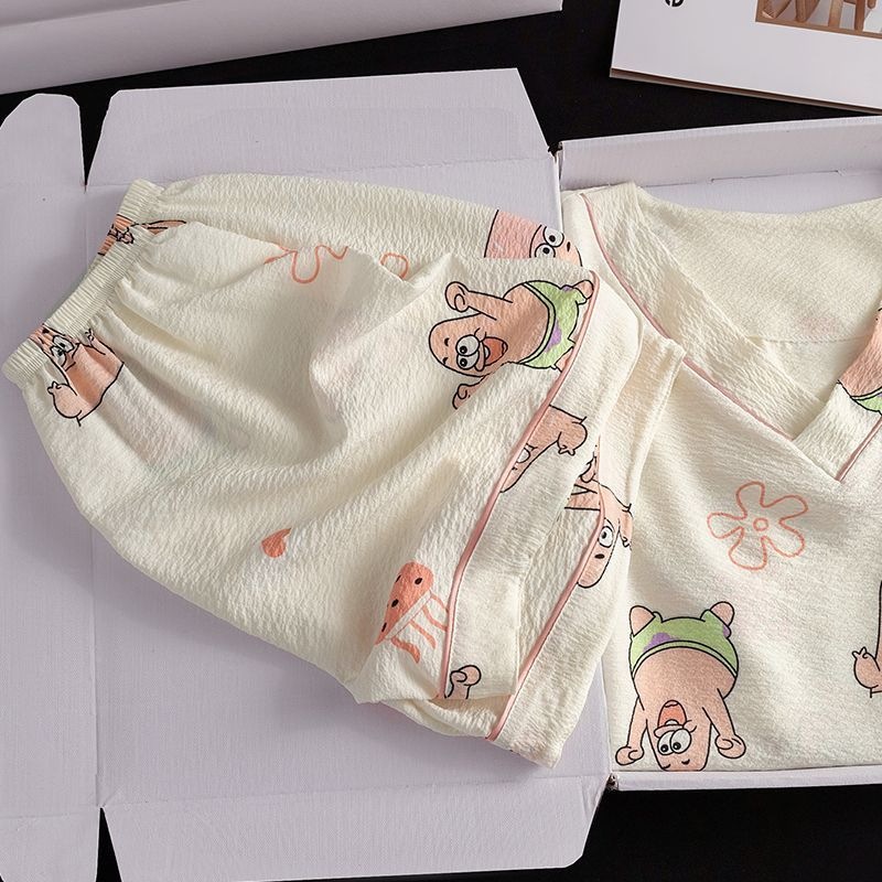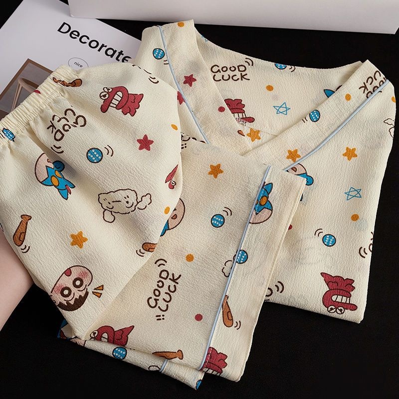 Baju Tidur Piyama Setelan BS-5058 Wanita Lengan Pendek Celana Pendek V Neck Adem Tipis Halus Baju Rumah Mimon Home
