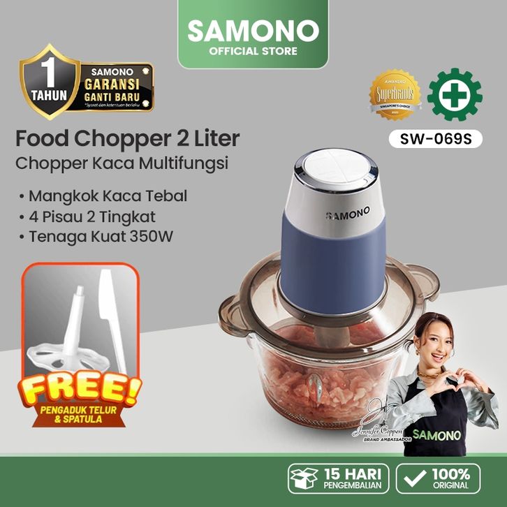 SAMONO Chopper Makanan 350W 4 Pisau Mangkok Kaca Penggiling Daging Food Grade SW-069S