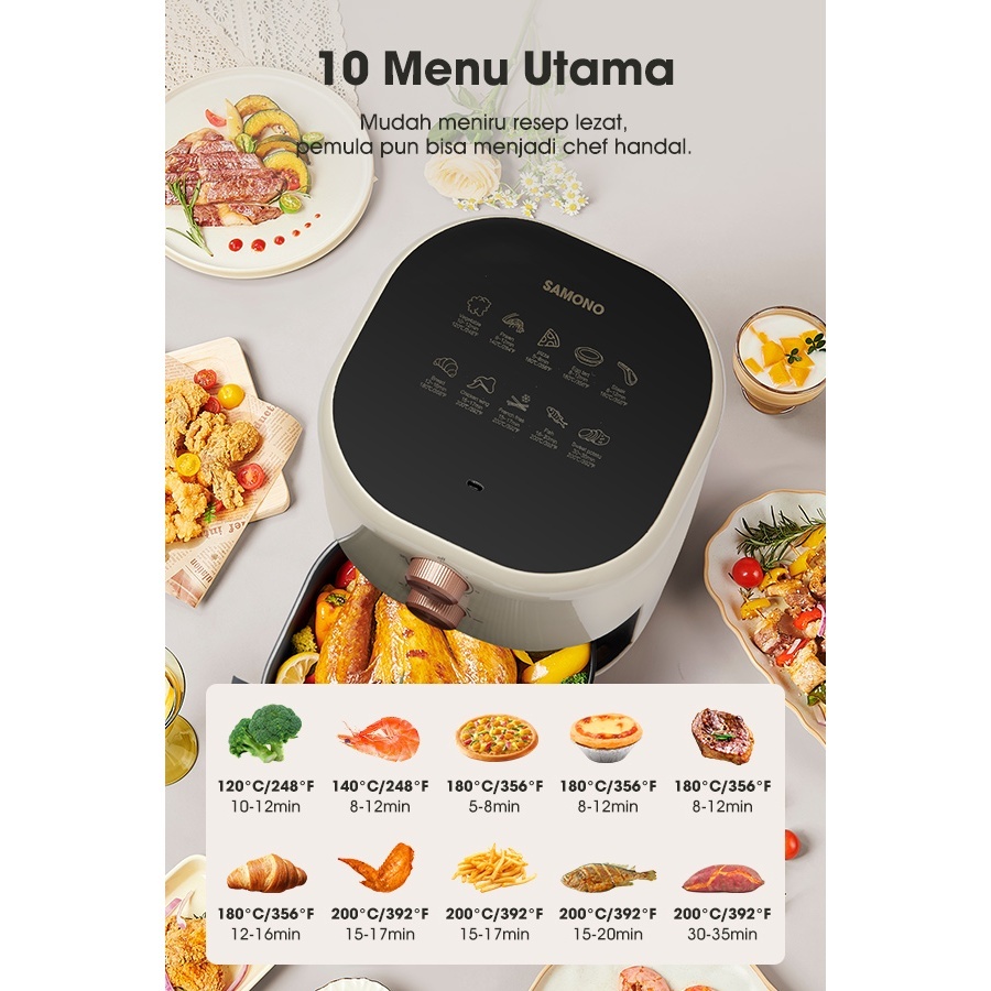 SAMONO Aesthetic Transparan Air Fryer 5L 700W Low Watt SNI Hemat Listrik Mesin Penggoreng Tanpa Minyak SW-AFW50