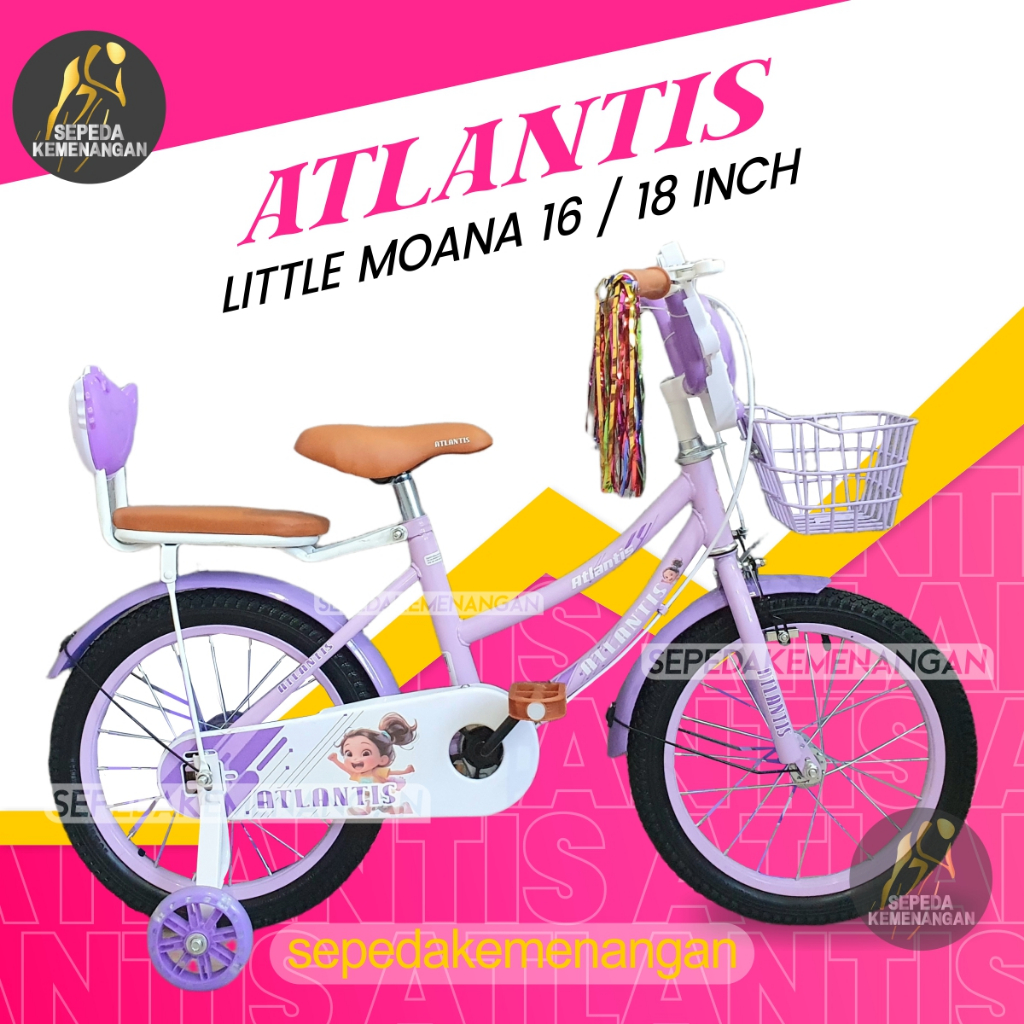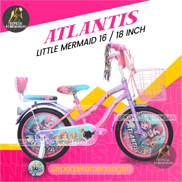 SEPEDA ANAK PEREMPUAN UKURAN 16 / 18 INCH LITTLE MOANA ( MUSIK ) / LITTLE MERMAID SEPEDAH MURAH BEST SELLER