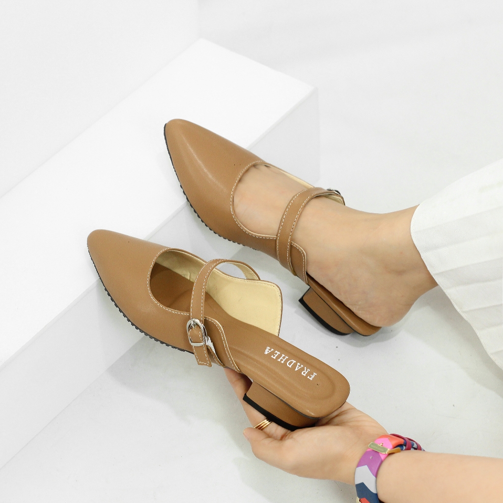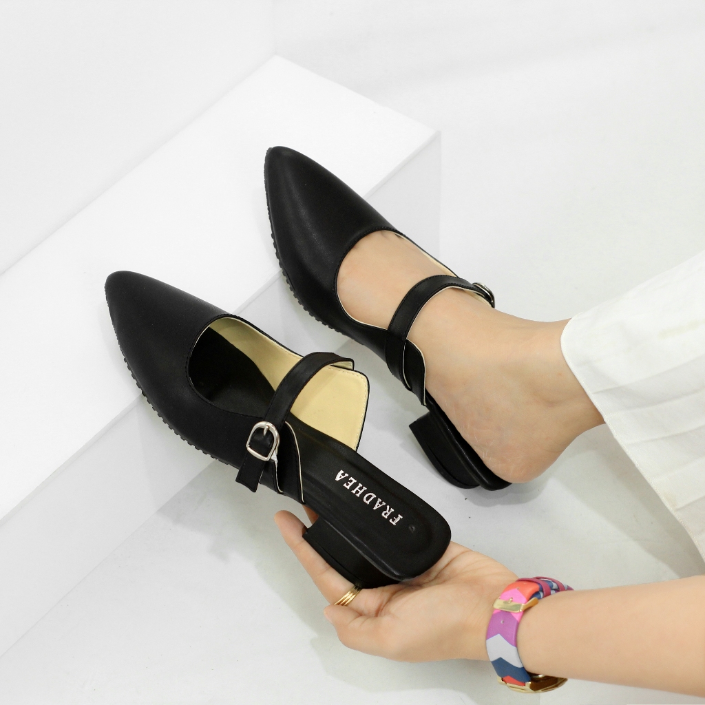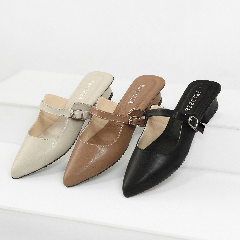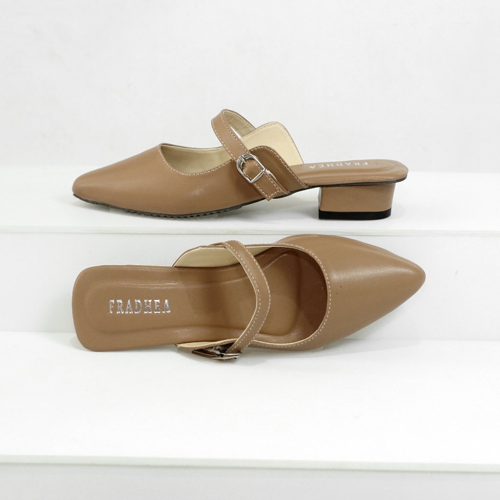 (Gratis Ongkir) Morilovy Sepatu Sandal Mules Tali Wanita Elegan Kekinian Hak 3cm IB 01