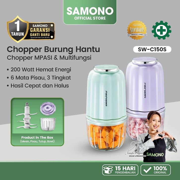 SAMONO Chopper Daging Bumbu MPASI 200 Watt Kapasitas 300ml 8 Mata Pisau SW-C150S Garansi 1 Tahun