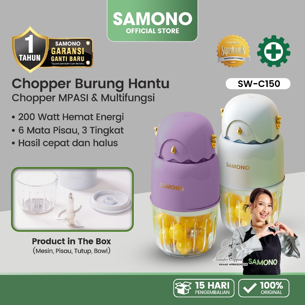 SAMONO Food Chopper MPASI 150Watt Mini Chopper Multifungsi 300ML Portable Stainless Steel Anti Karat SW-C150