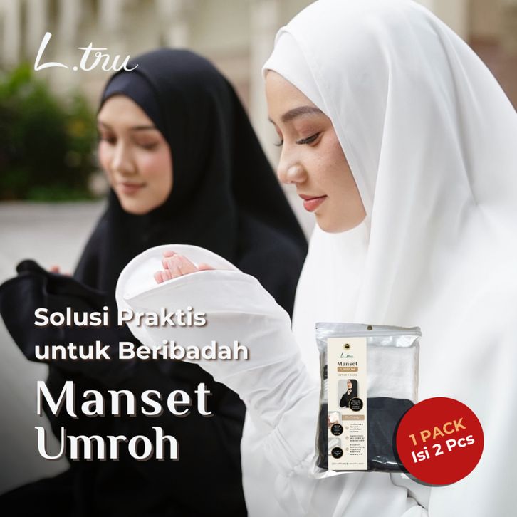 PROMO L.tru - Manset Umroh isi 2 (Black & White) | Perlengkapan Haji dan Umroh | Sarung Tangan Sholat | Handsock Full Co