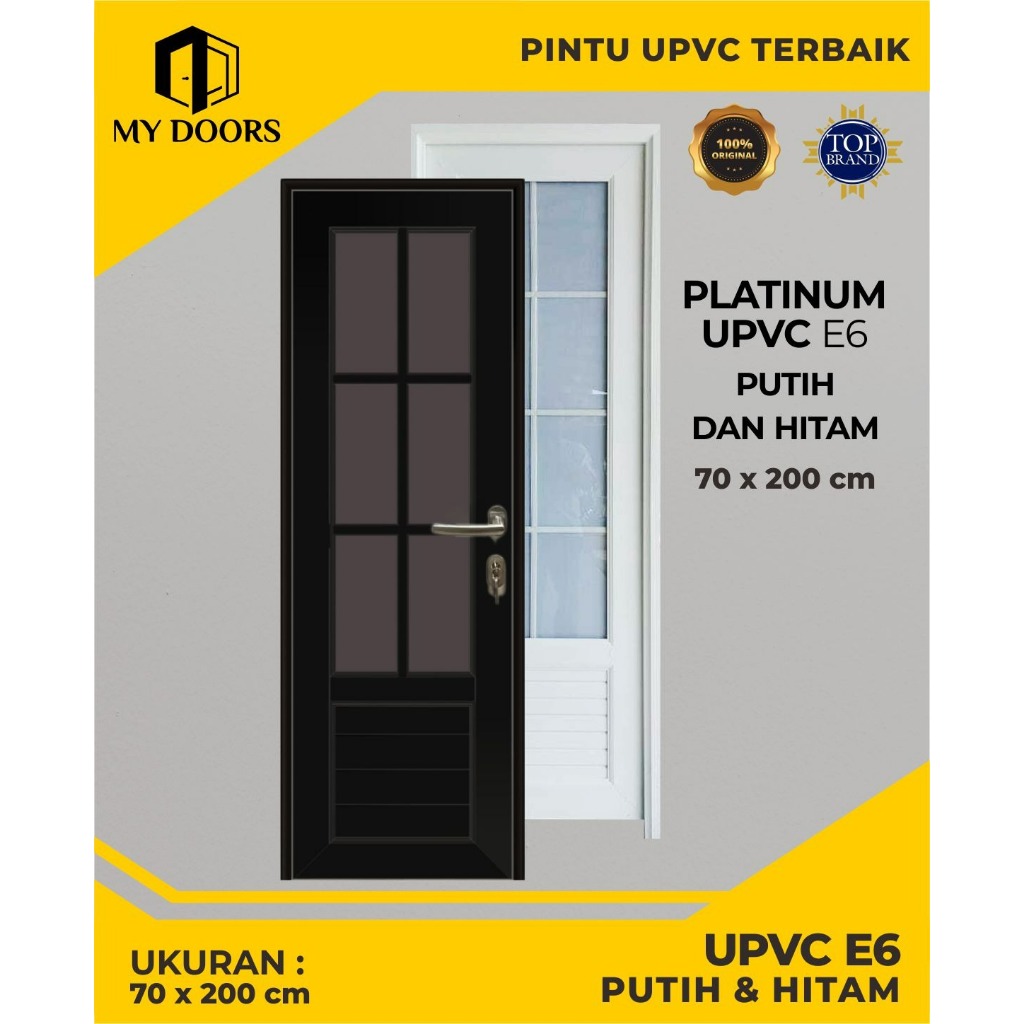 Pintu Kamar Mandi UPVC 70x200 PLATIMUM 6 Kaca Bahan Tebal Tahan Terhadap Segala Cuaca Lengkap Denga Handle & Engsel