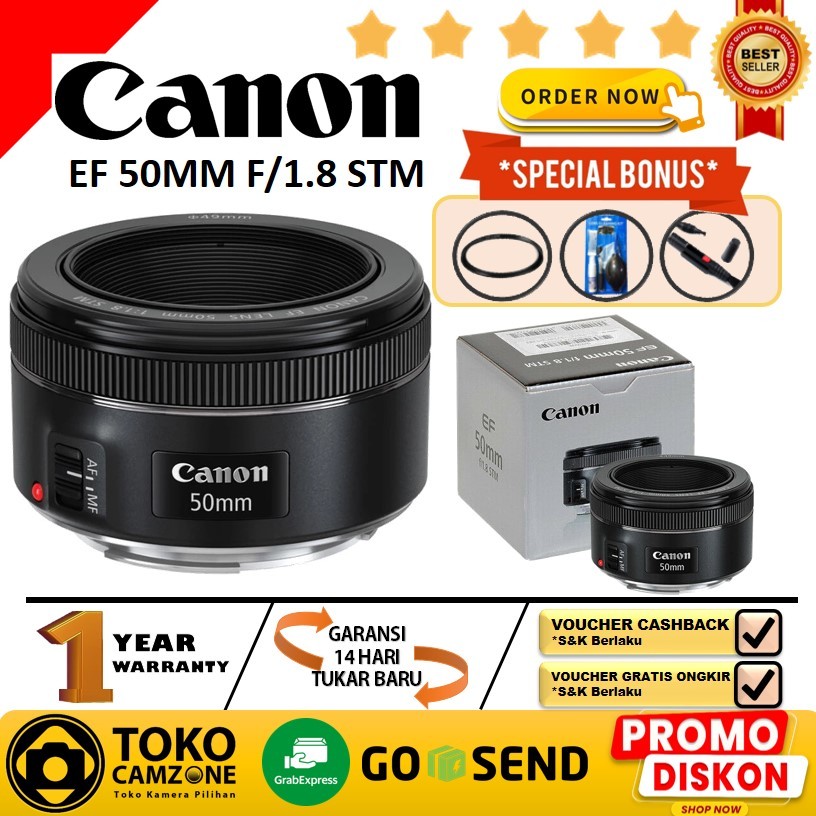 LENSA CANON EF 50MM F1.8 STM FIX LENS AUTO FOCUS - LENSA KAMERA DSLR - GARANSI RESMI ORIGINAL 100%
