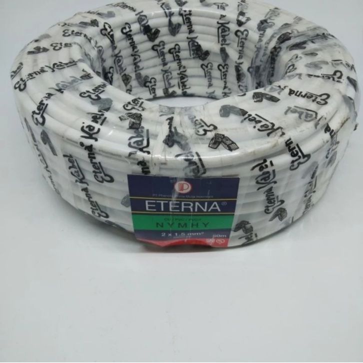 Kabel Listrik Serabut Tembaga Isi 2 ETERNA 2X1,5 NYMHY NYYHY Hitam Putih 50 Meter 1 Roll
