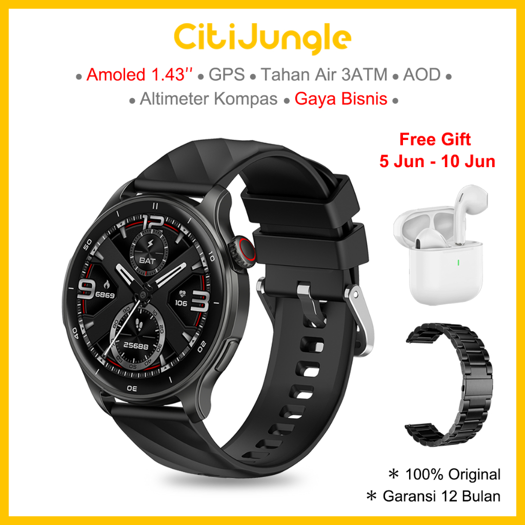 [Garansi 12 Bulan] Citijungle Smartwatch GPS SE Layar Bola AMOLED 1.43” Tahan Air 3ATM Kompas Tekanan Udara