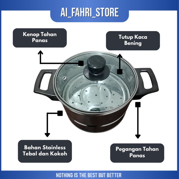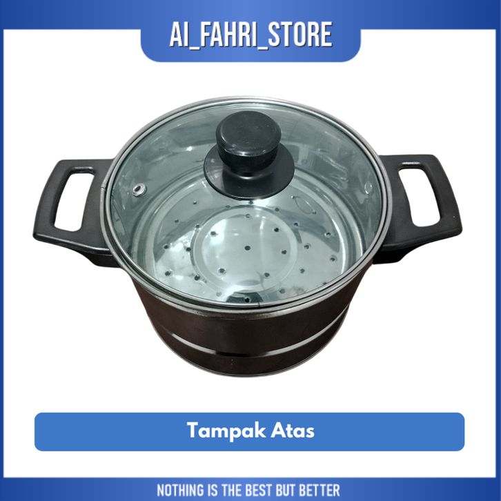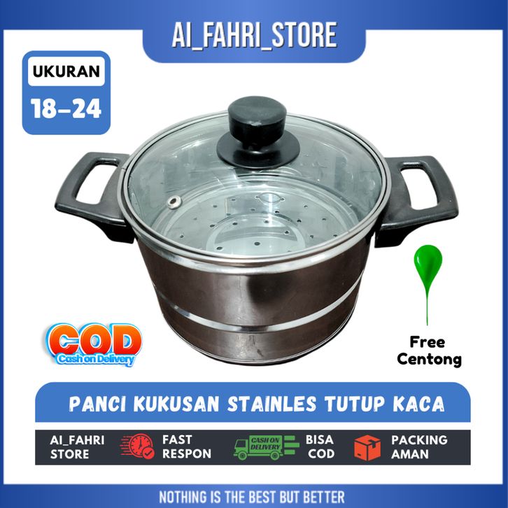Panci Kukusan Nasi Tutup Kaca UK 18-24 Free Centong Stainless Stell Panci Tutup Kaca Panci Kukusan Serbaguna Panci Rebus