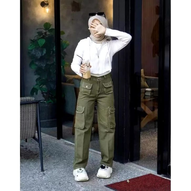 Celana Kargo Wanita / Cargo Denim Highwaist Loose / Celana Jeans Wanita Korean / Celana Panjang Wanita