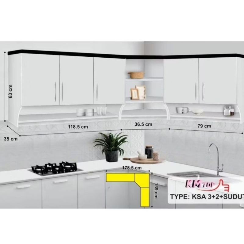 KITCHEN SET MINIMALIS LEMARI GANTUNG 1SET (3PINTU/2PINTU/SUDUT) FULL PUTIH LIS HITAM BLACK-WHITE KMTOP TERBARU VIRAL
