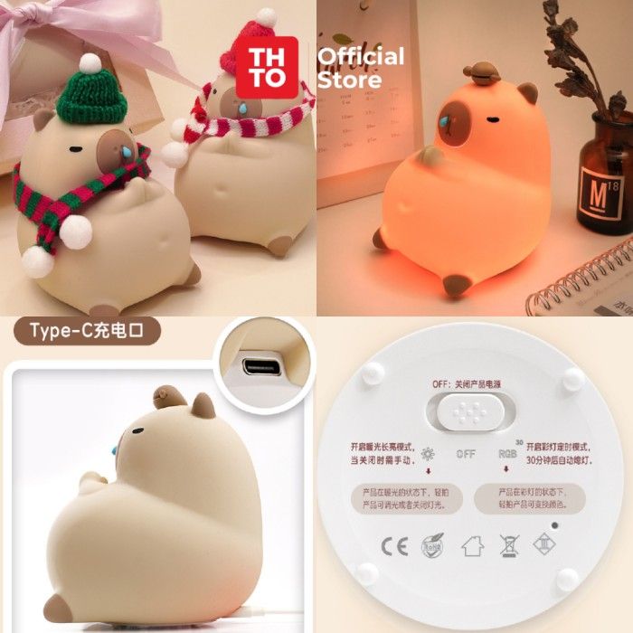 THTO Lampu Tidur Night Light Kamar Anak Nyala Squishy Capybara A084