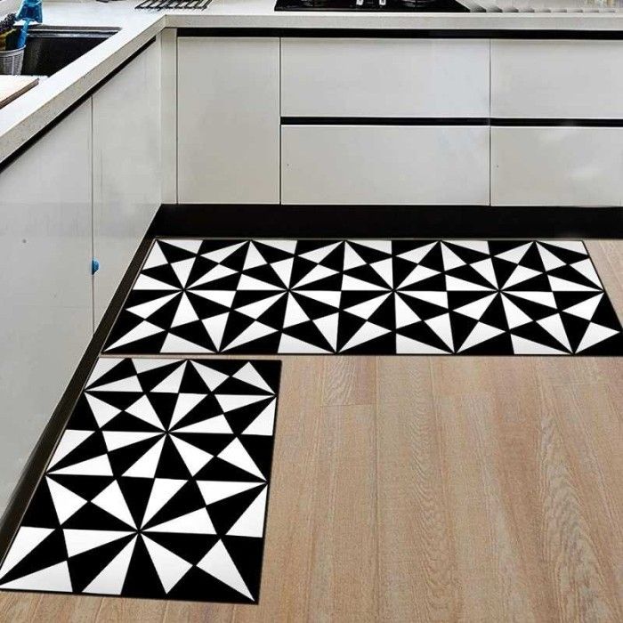 Keset Dapur Anti-slip Living Room Kitchen Balcony Rug Dekorasi - D320 - Hitam 50 x 80 cm