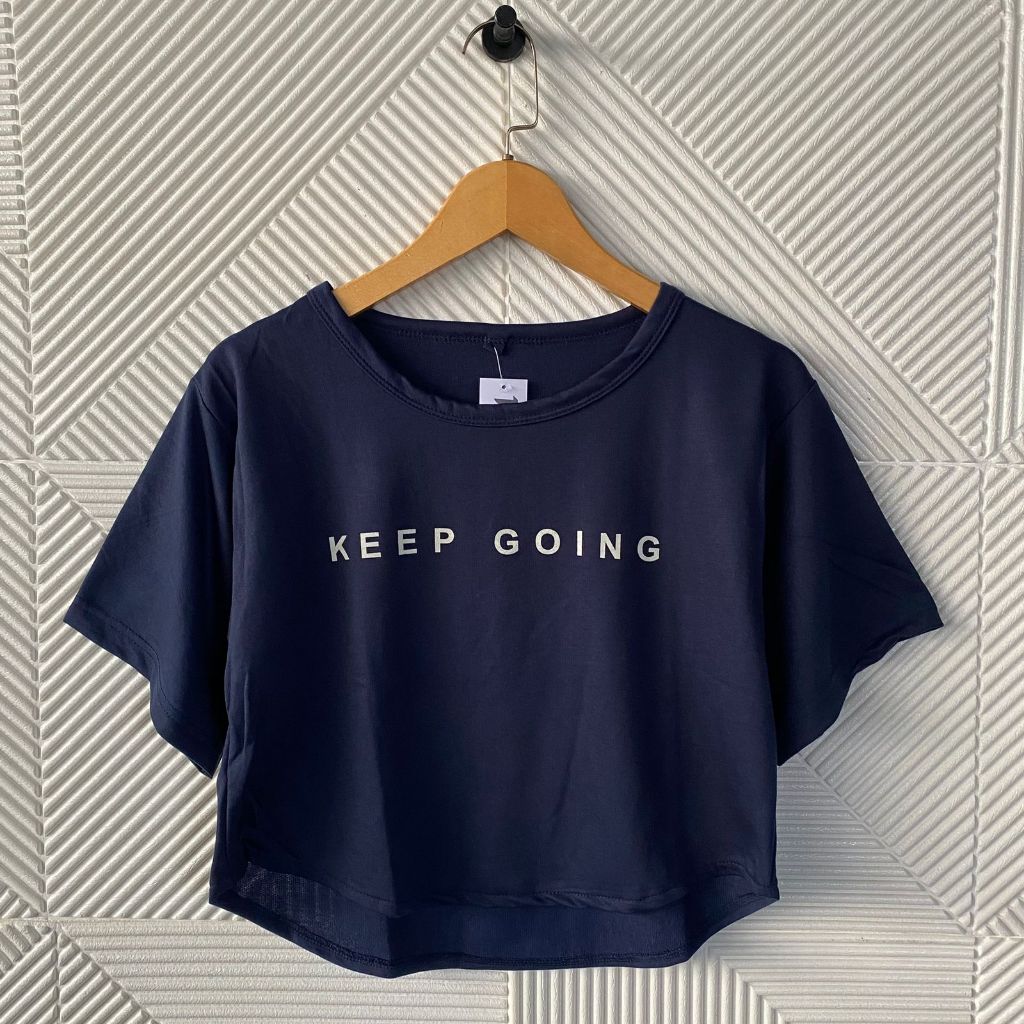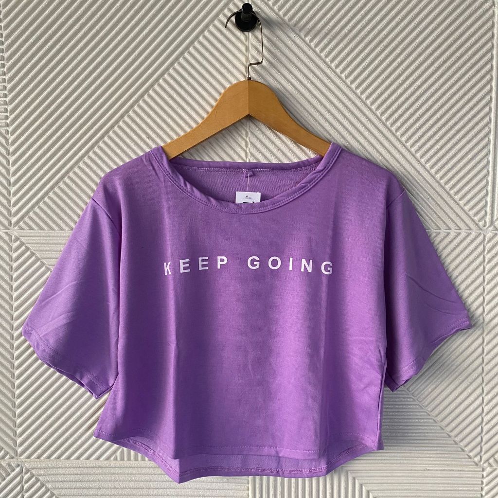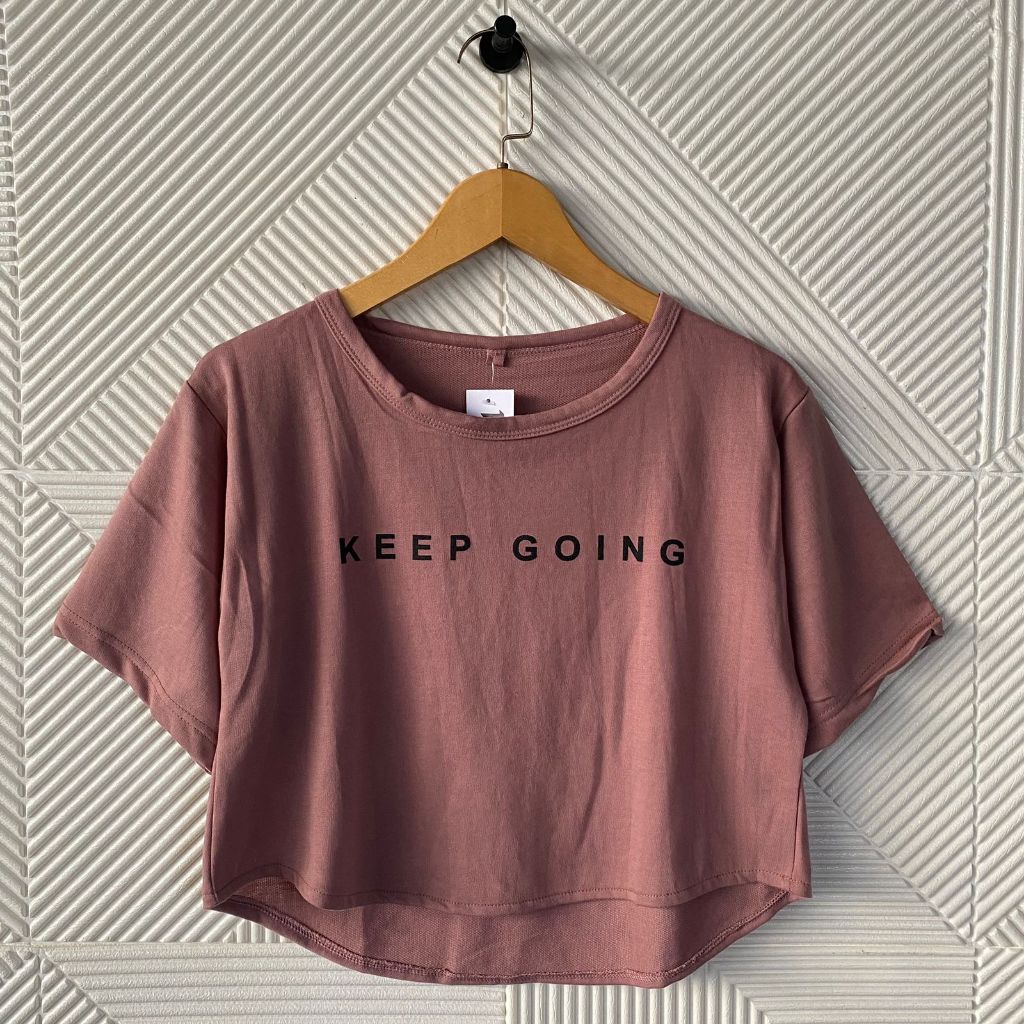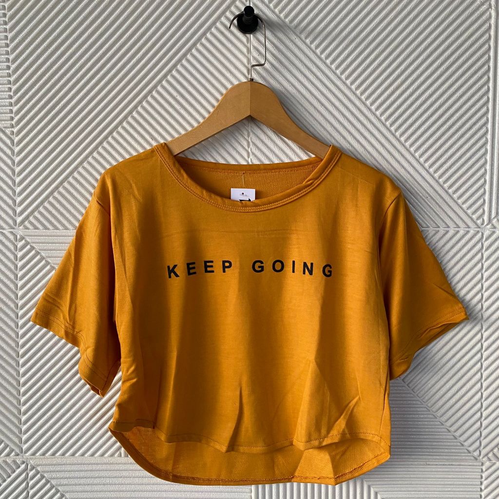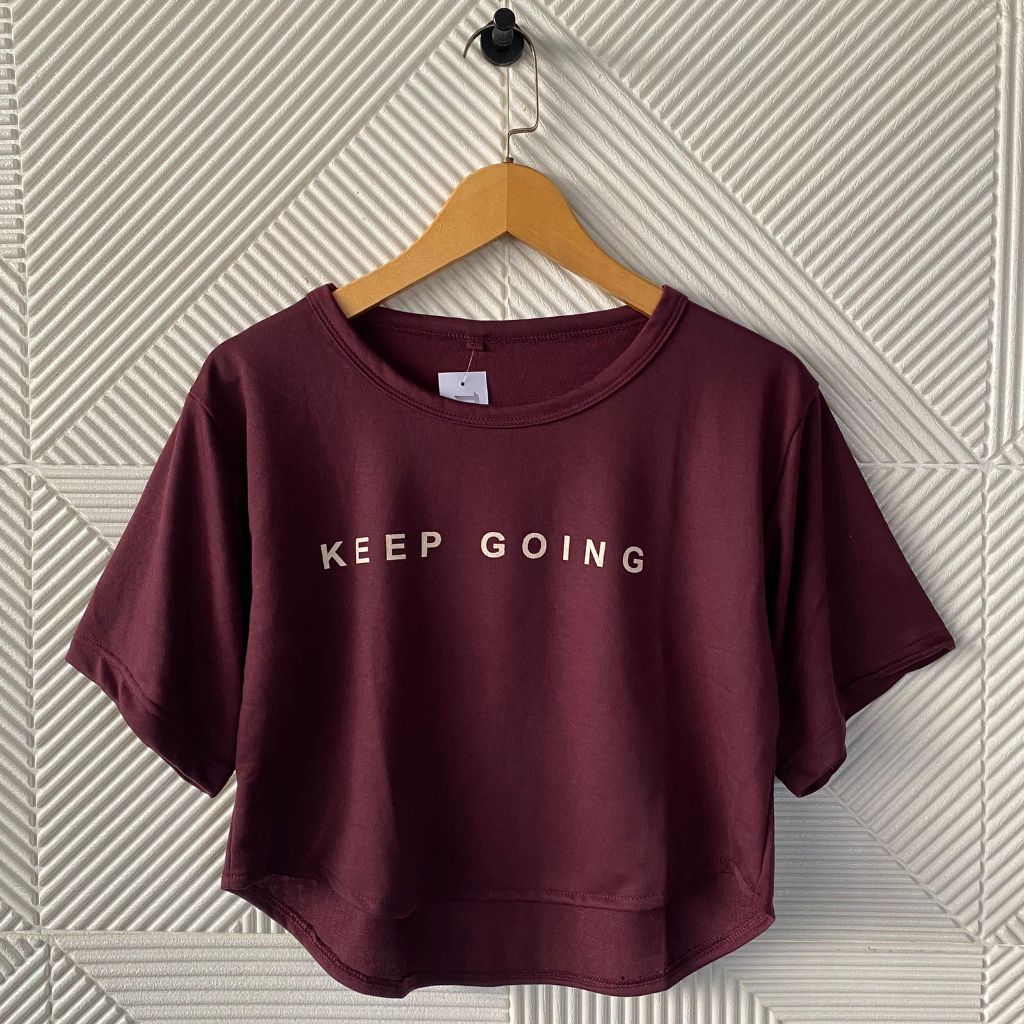 Atasan Kaos Oval Lengan Pendek Sablon Keep Going / Kaos Wanita Terbaru / Crop Top / Pakaian Wanita