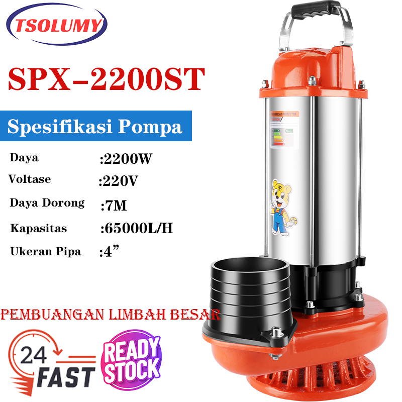 TSOLUMY POMPA CELUP AIR KOTOR 2200W STAINLESS STEEL SUBMERSIBLE PUMP 4INC POMPA KOLAM LKAN BANJIR OFFICIAL STORE