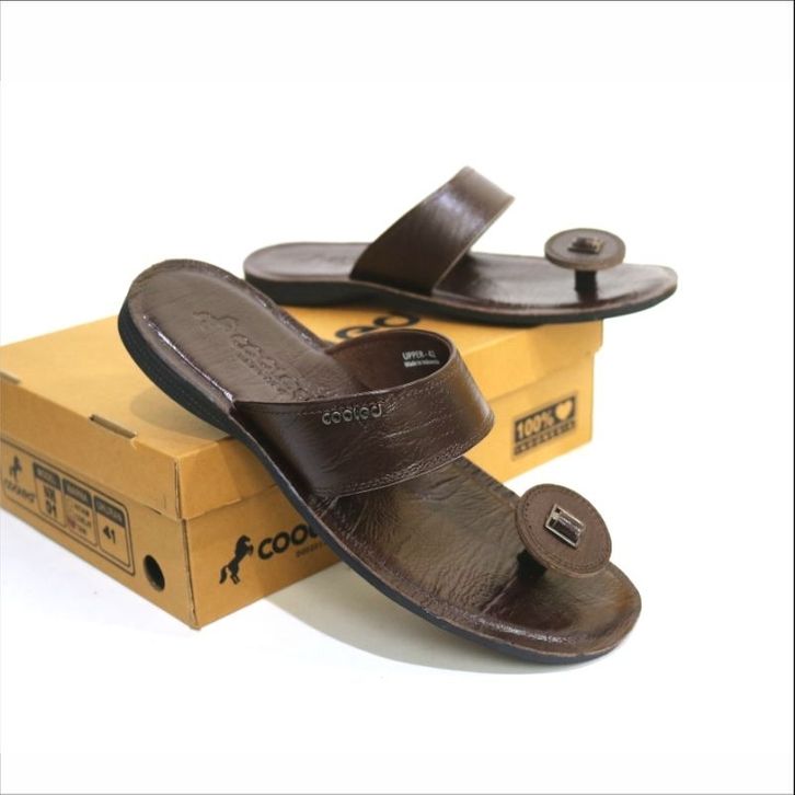 TERBARU OROGONAL!!! SENDAL COWO COOLED Sandal Jepit Kulit Pria Jamur B08 Tan-Cokelat SANDAL COWOK