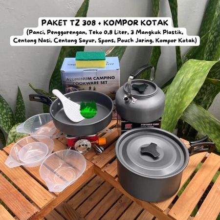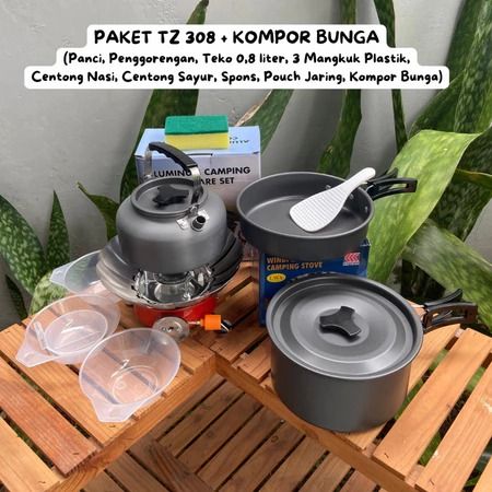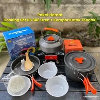 Paket Hemat Cooking Set + Kompor Gas Camping Portable Alat Masak Camping Portable
