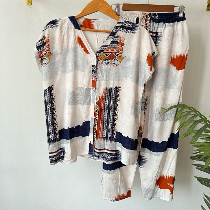 Baju Setelan Wanita Dewasa Terbaru Kekinian Pajamas Wanita Motif Abstrak Baju Setelan Bahan Rayon Import Premium