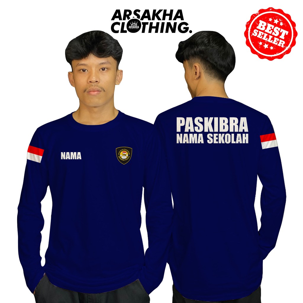 Kaos Lengan Panjang Paskibra Pasukan Pengibar Bendera Pusaka Gratis Nama dan Nama Sekolah Baju Distro Katun Combed 30s