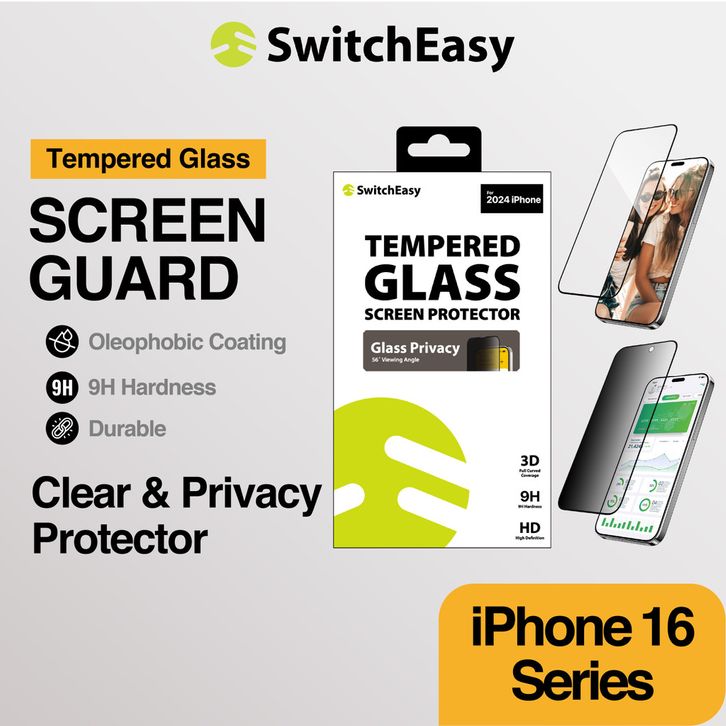 SwitchEasy Tempered Glass iPhone 16 Pro Max / 16 Pro / 16 Plus / 16 Anti Gores Screen Guard Protector