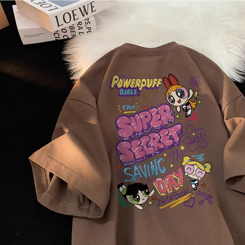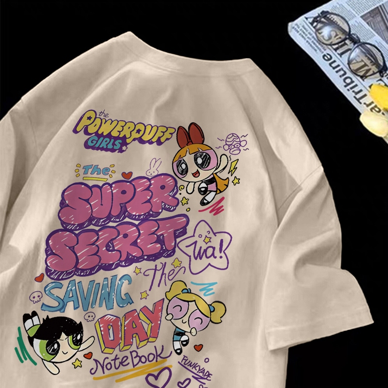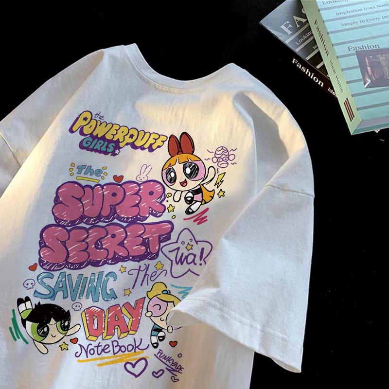 BAJU KAOS OVERSIZE T-SHIRT LENGAN PENDEK WANITA KOREAN STYLE BAJU ATASAN WANITA TERBARU CETAKAN KARTUN POWERPUFF GIRL