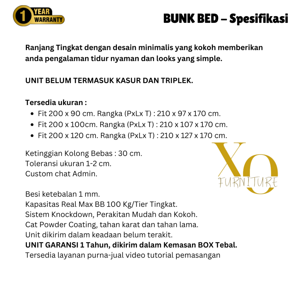 Ranjang Susun 2 Tingkat MBS Bunk Bed Ranjang Besi Susun Ranjang Tempat Tidur Ranjang Tingkat Bahan Kokoh