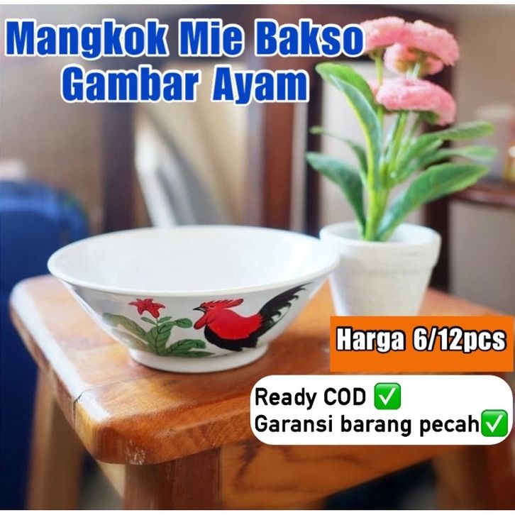 12pcs Mangkok Ayam Jago Keramik Lusinan Mangkok Mie Bakso Ayam FREE Bubble