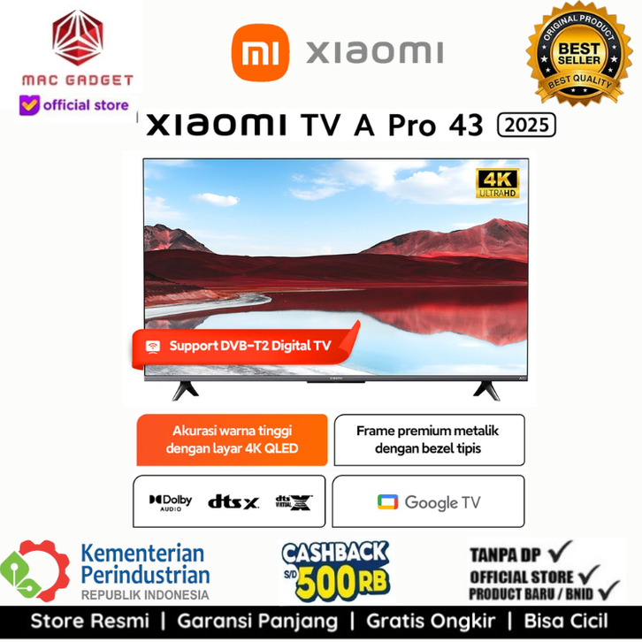 Official Storeš„Xiaomi Google TV A Pro 43 2025 | Layar QLED 4K | Dolby Audio, DTS-X, DTS Virtual:X - A Pro 43 2025 RESMI