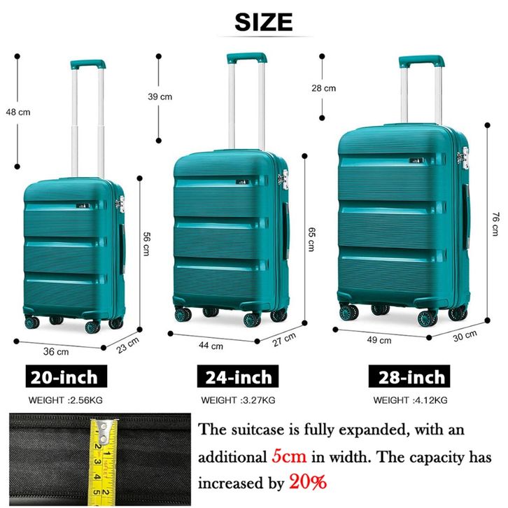 SEA CHOICE Koper 20/24/28 Inch suitcase expandable, TSA luggage bahan PP ringan tas bagasi