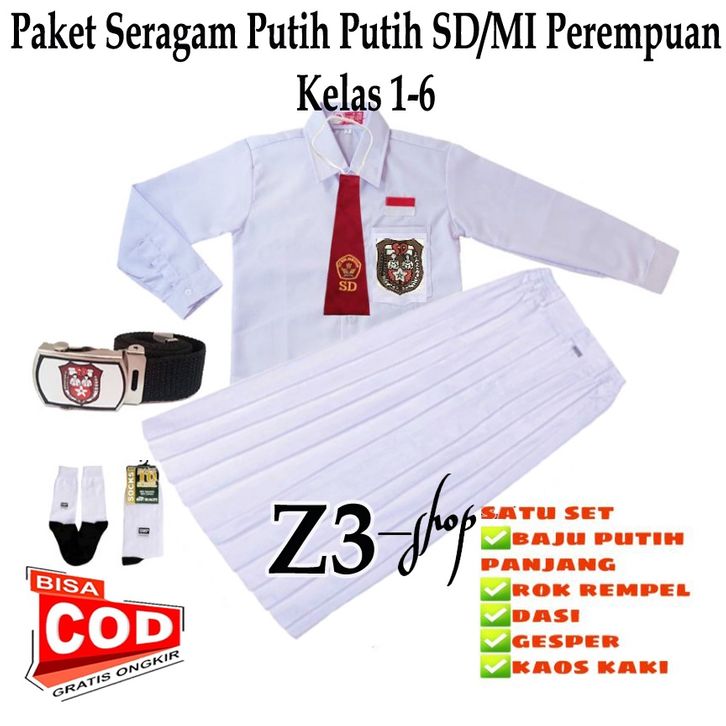Baju Seragam SD paket seragam sekolah SD putih putih perempuan baju putih panjang rok putih panjang / setelan lengkap k