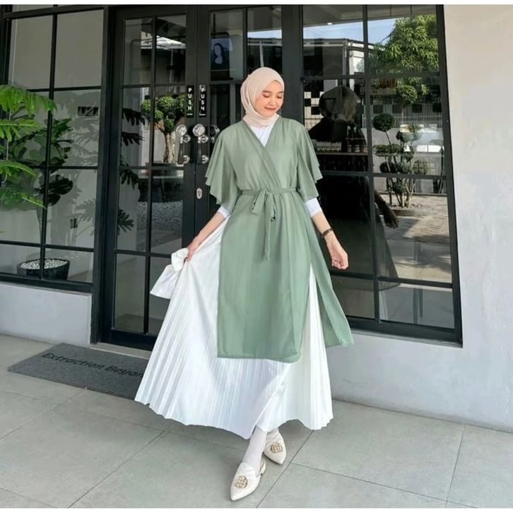 Mala Outer Ceruty Outer by Alyssa Fashion Luaran Kekinian Kondangan OOTD Lengan Kriwil Bahan Ceruty