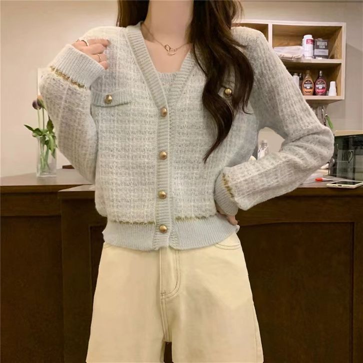 si RendahCardigan rajutan dua potong kasual bertekstur baru