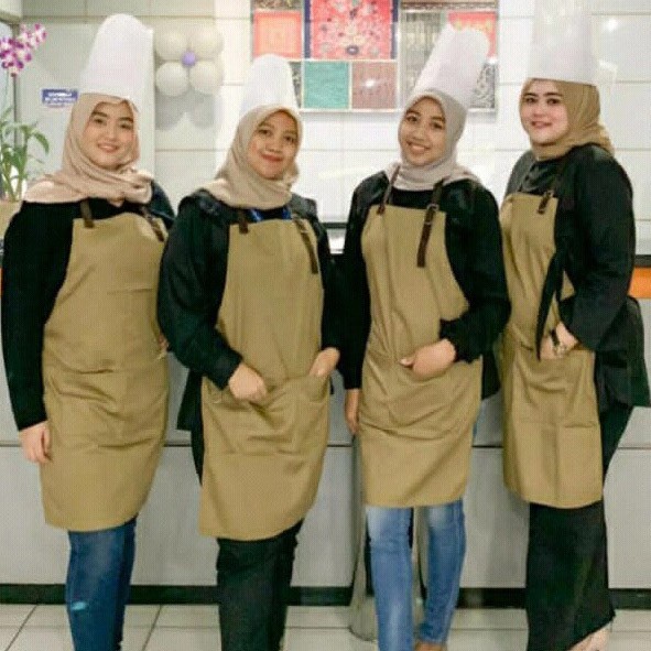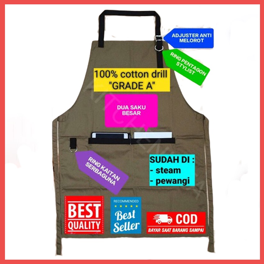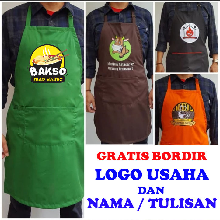 Gratis LOGO NAMA Apron Celemek Bahan Drill Halus Premium Custom Request Satuan