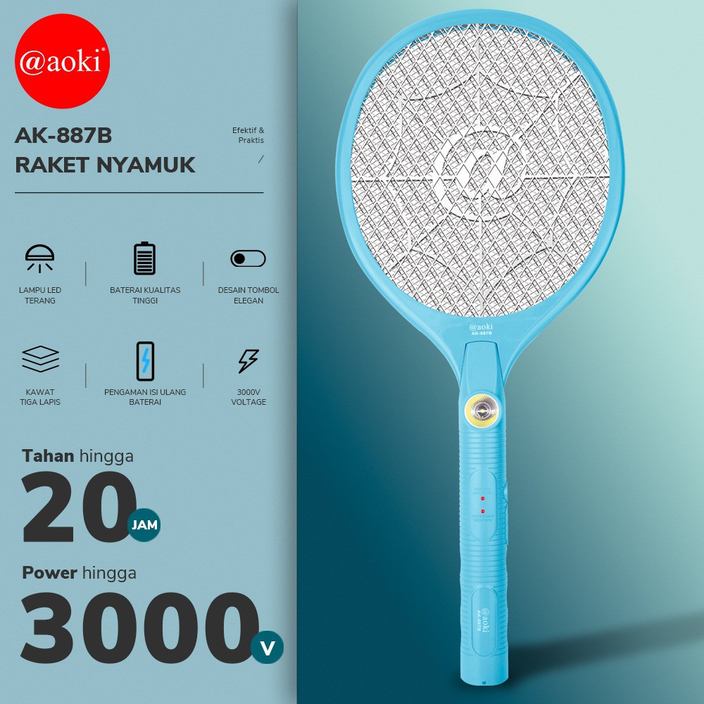 [Star] Raket Nyamuk AOKI Cas Kabel Tahan Lama LED Paling Murah