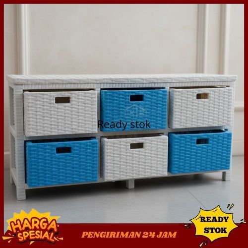 Meja Tv Rotan sintetis Lemari laci Rotan jasmine 6 tengah panjang Ready stok