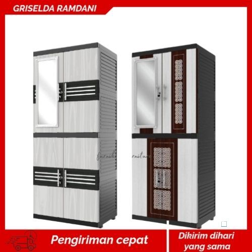 LEMARI PAKAIAN PLASTIK NAIBA FIT FULL KUNCI CERMIN SUSUN 4